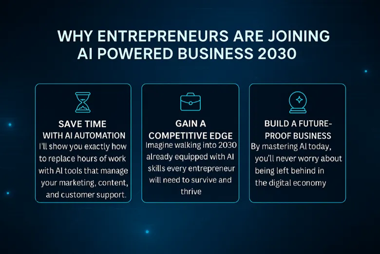 That’s why I created AI Powered Business 2030—a complete training program that teaches you how to use AI business tools, AI-powered marketing systems, and automation strategies to future-proof your business. My mission is simple: to help entrepreneurs like you take advantage of the same systems I use to grow and scale without burning out.